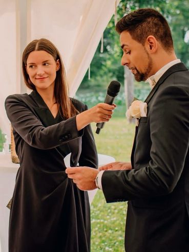 Kurz gesagt: Ihr arbeitet mit einer Profi-Rednerin, die Herzblut, Wortwitz und Erfahrung vereint – und mit Freude dafür sorgt, dass eure Trauung einzigartig wird.